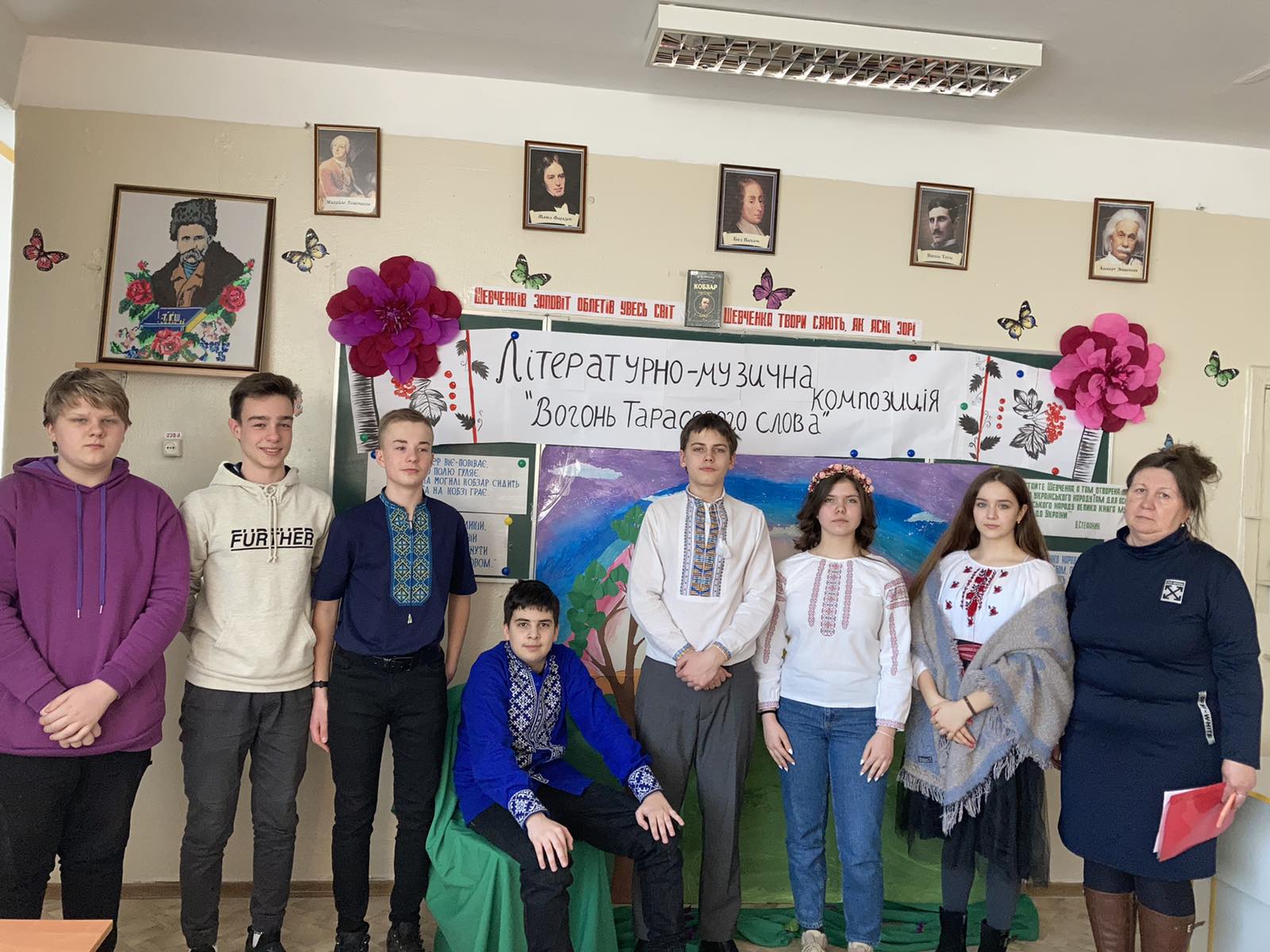09.03.2021 розпочався тиждень української мови та літератури. Щовесни на початку березня в нашій державі вшановують пам’ять Великого Кобзаря -Тараса Григоровича Шевченка – поета, прозаїка, художника. У нашій школі стало традицією відзначати Шевченківські дні. З метою популяризації його творчої спадщини, активізації патріотичного виховання, пов’язаного з іменем видатного митця, у школі було проведено ряд заходів, а саме: літературні читання творів Т.Г. Шевченка;пізнавальний проєкт “Тарас Шевченко – художник”; конкурс – вікторина “Мені тринадцятий минало…” ;тематична літературна виставка у шкільній бібліотеці; літературно-музична композиція «Вогонь Тарасового слова»