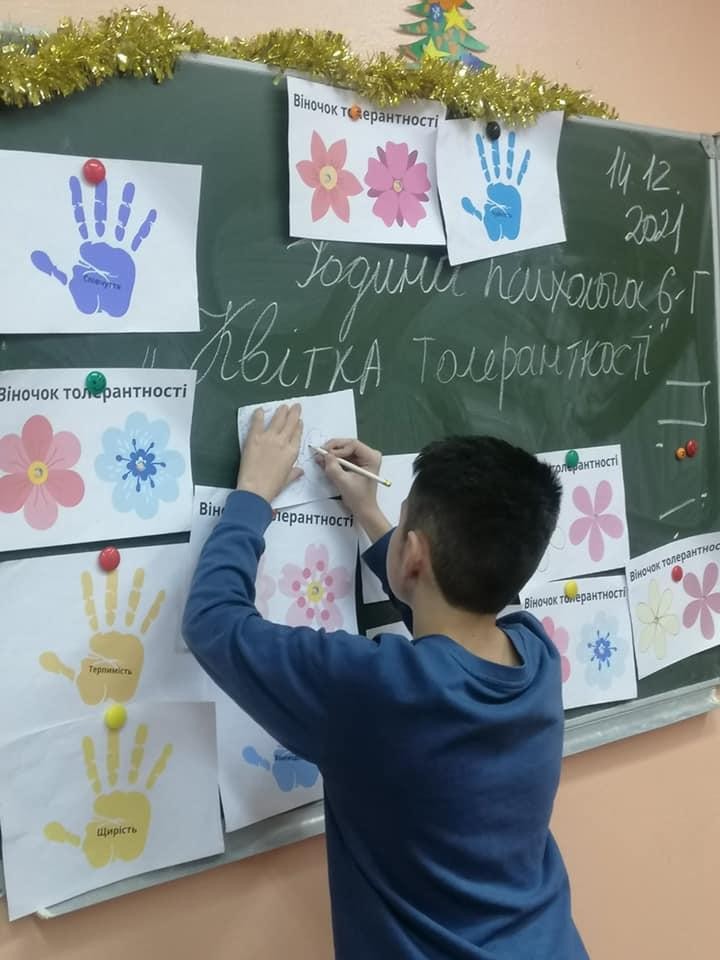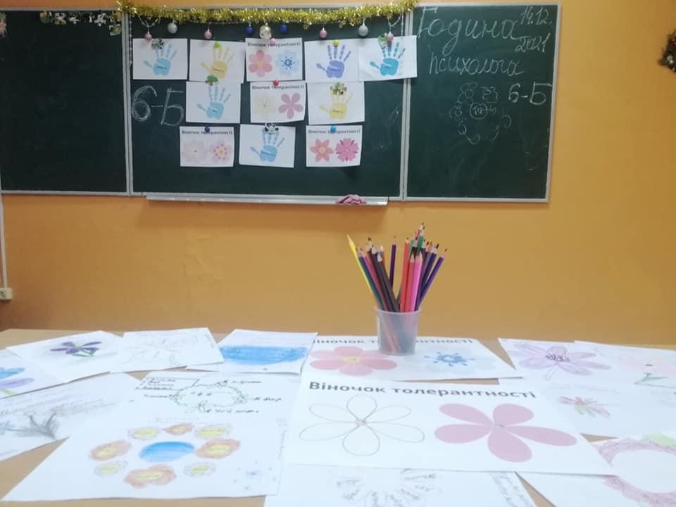 В рамках акції "16 днів проти насилля" практичний психолог Гудима Л.В. провела практичні заняття "Квітка толерантності" для учнів 6-х класів.