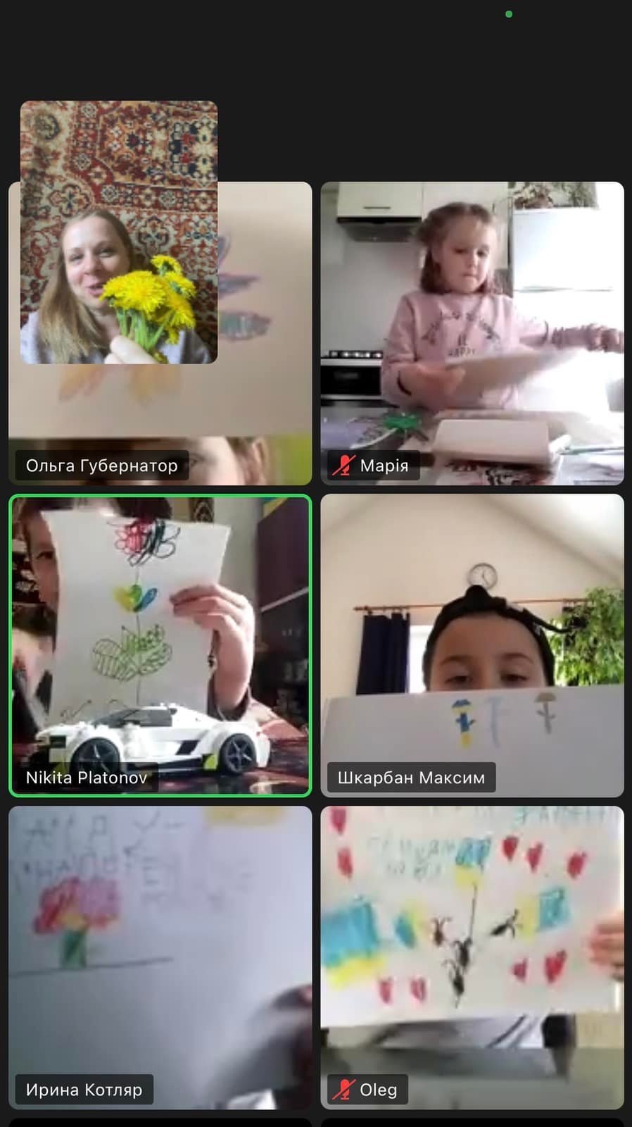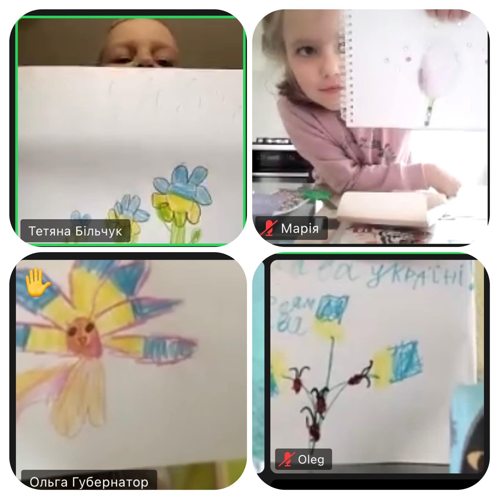 Спочатку послухали казку про чарівну квітку, яка допомогла добрим гномам перемогти злих тролів, а потім кожен намалював свою квітку для України і наділив її суперсилою, у когось це хвиля, що накриває ворога, а у іншого це квітка, яка співає воїнам пісні підтримки, які діти почали співати разом на занятті.