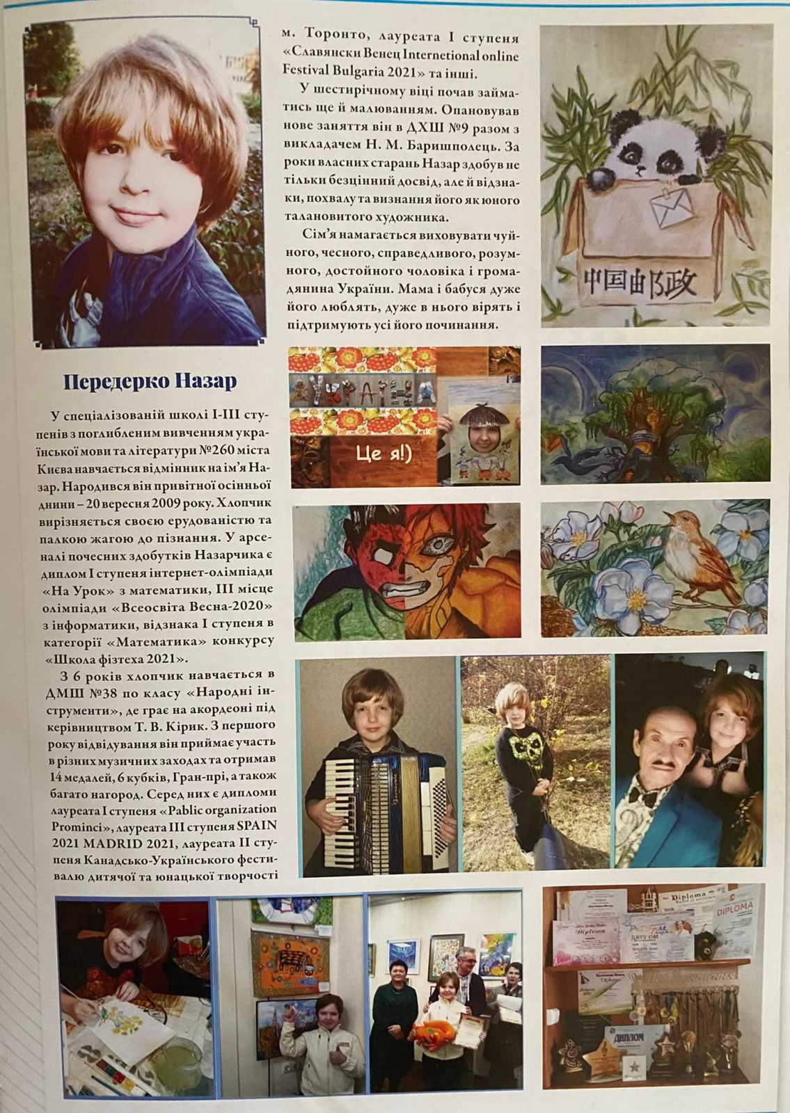 2021 року побачила світ інформаційно-іміджева збірка «Майбутнє Київщини - талановиті діти». Книгу видано в рамках всеукраїнського проекту «Майбутнє України - талановиті діти», метою якого є надати можливість кожній обдарованій дитині заявити про себе, представити свої власні досягнення.