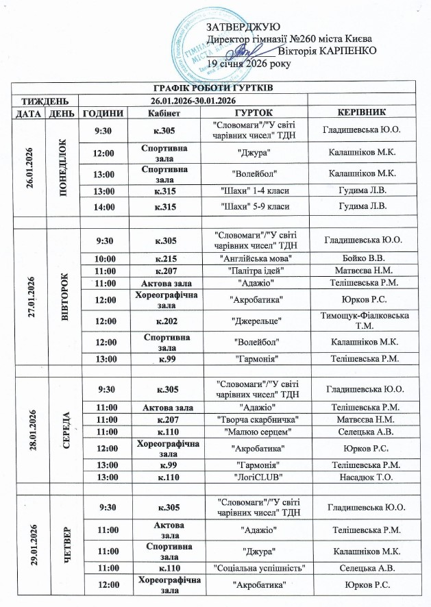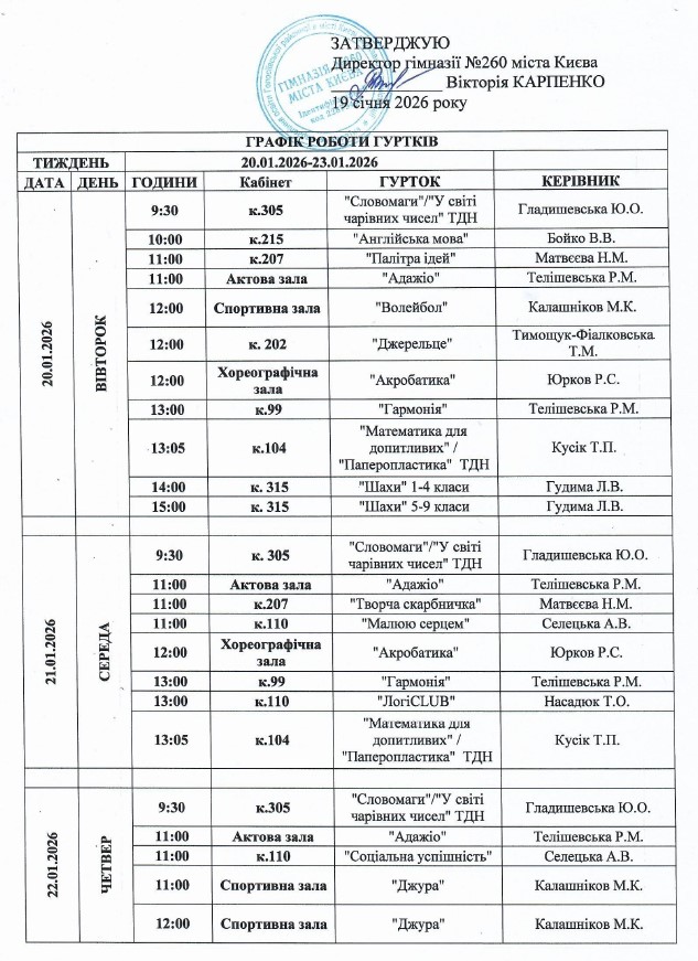 ГРАФІК РОБОТИ ГУРТКІВ